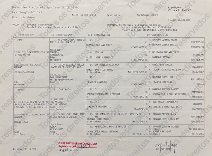 Despiste de patologias congénitas (Laboratório Laboklin):